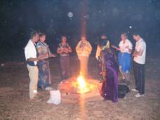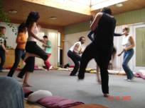 Durch die Verbindung zwischen Klang und den dynamischen Bewegungen, heilenden Mantras, Gesang, Feuermeditation